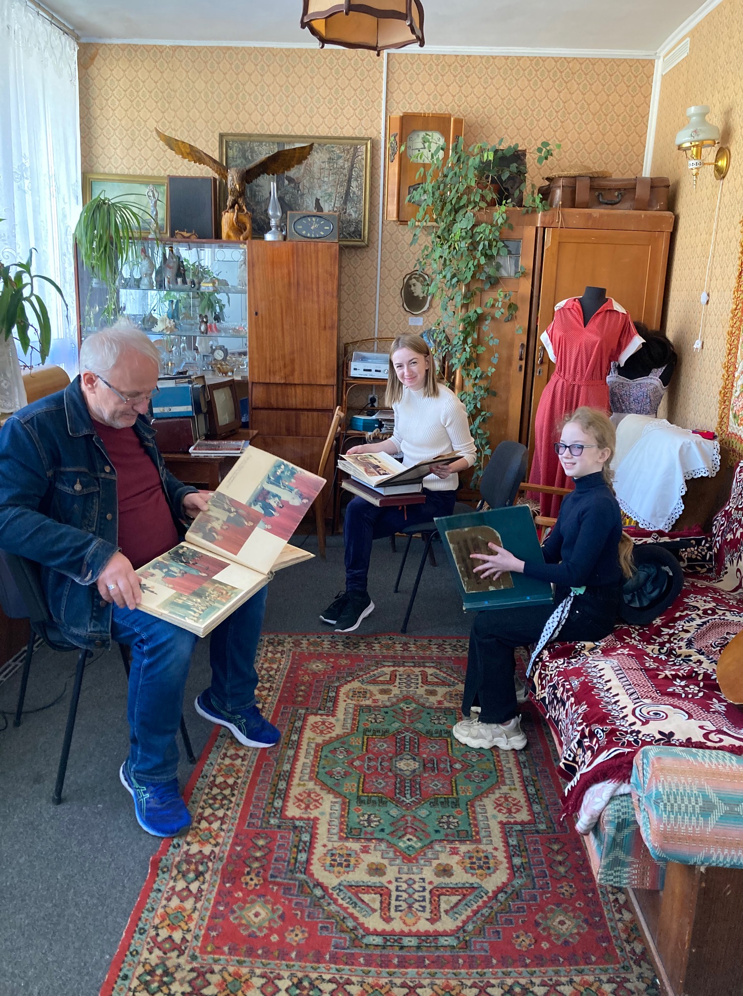 Ось і минув цьогорічний День міста, і після всіх звітів та прес-релізів про проведені заходи у нас, музейників, залишилися певні рефлексії у вигляді коментарів вдячних відвідувачів у книзі відгуків, та відзнятих нами світлин. З-поміж них особливою для нас стала ця пара фото з дня відкритих дверей музею з нагоди Дня міста-2025: відвідувачі неспішно розглядають фотоальбоми з музейної фондової колекції в одному з експозиційних залів музею.
