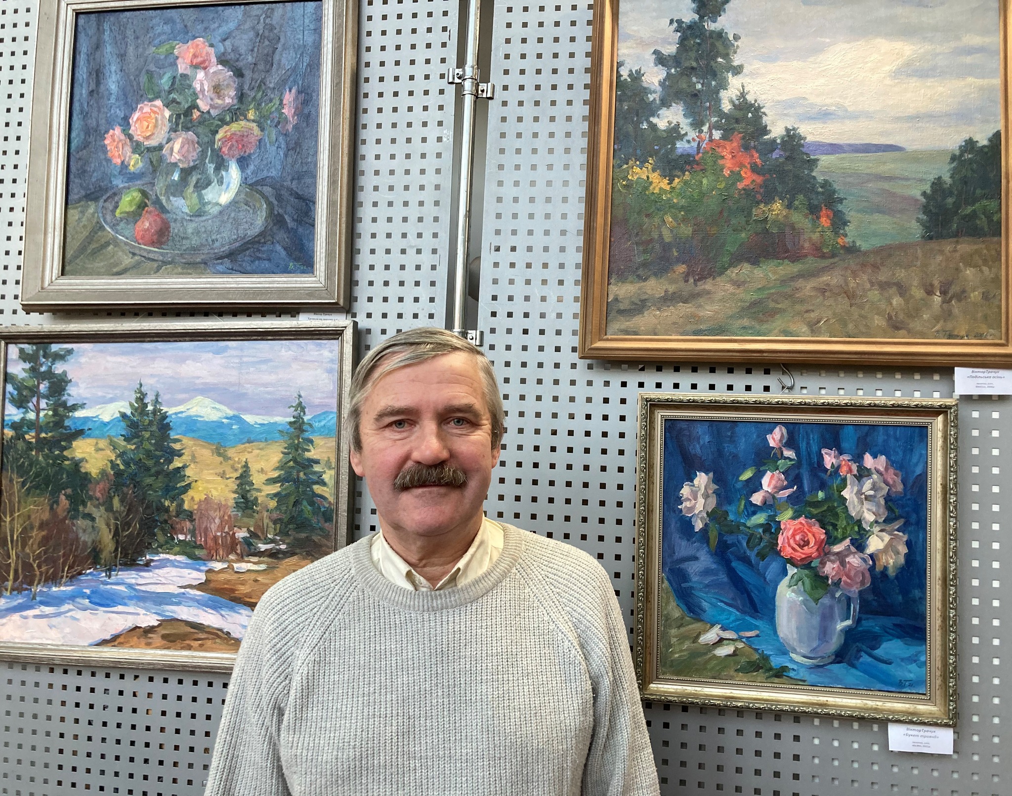Знаний хмельницький живописець, графік, архітектор, викладач Віктор Трачук представив олійний живопис в кращих мистецьких традиціях класичної школи. Пейзажі Карпат і милих серцю подільських краєвидів, як завше, приємно вражають тонко підміченими і віртуозно відтвореними митцем настроями мінливої природи, незбагненним умінням передати мазком пензля живе дихання й трансформацію пір року, годин доби, природних стихій: повітря, води, землі, трав, дерев і квітів, а також показати внутрішнє світло усього живого на землі, осяяного небесними світилами. Натюрморти ваблять феноменально переданою фактурою, грою світлотіней, соковитістю та водночас притишеною м`якістю кольорів.