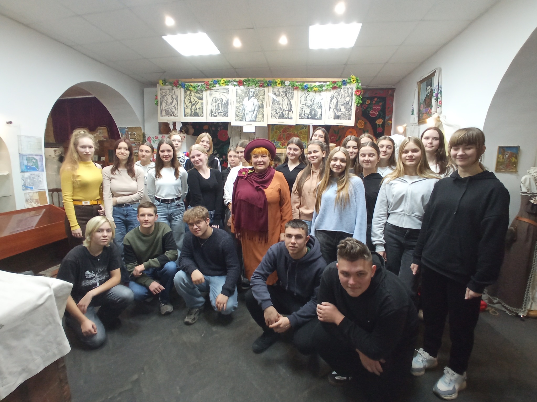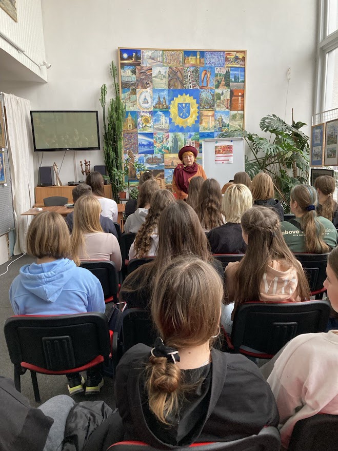 Велике число учасників Революції гідності одразу з Майдану вирушило на фронт рашистсько-української війни. Адже російська федерація використала суперечності всередині України, щоб уже 20 лютого 2014 року захопити Крим, а далі навесні 2014-го роз`язати війну на сході України. Серед 20 хмельничан - загиблих на війні з російською федерацією учасників Майдану - наймолодші наші герої 17-річний Назар Якубовський, який загинув 5 вересня 2014 року та Дмитро Крамар, 1999 року народження, котрий загинув 6 травня 2023 року. Учасники зустрічі обговорили разом з пані Галиною Барабаш наслідки та уроки Революції Гідності, значення цих поворотних подій для подальшого поступу України. Також студенти мали чудову нагоду оглянути музейну експозицію, в тому числі, розділи, присвячені українським Революції на граніті, Помаранчевій революції та Революції гідності. Привернула увагу гостей заходу й зала середньовічної реконструкції, присвячена пам`яті хмельничанина, героя рашистсько-української війни Миколи Тараса. Адже це саме він створив цю експозицію, передавши музею для інтерактивного використання свою особисту колекцію реплік середньовічних обладунків та зброї. А спільне фото нагадає нашим гостям, що в музеї історії міста Хмельницького на наших відвідувачів завжди чекають цікаві насичені заходи, пізнавальна експозиція, захоплюючий інтерактив.