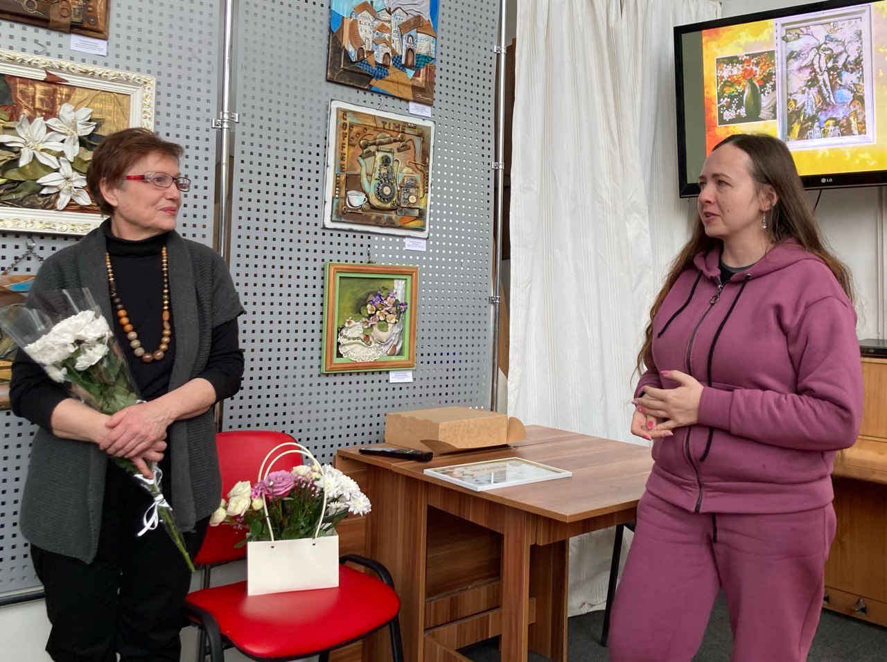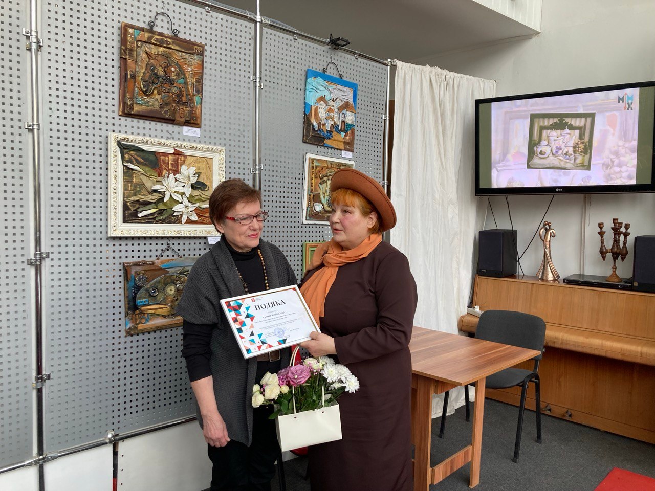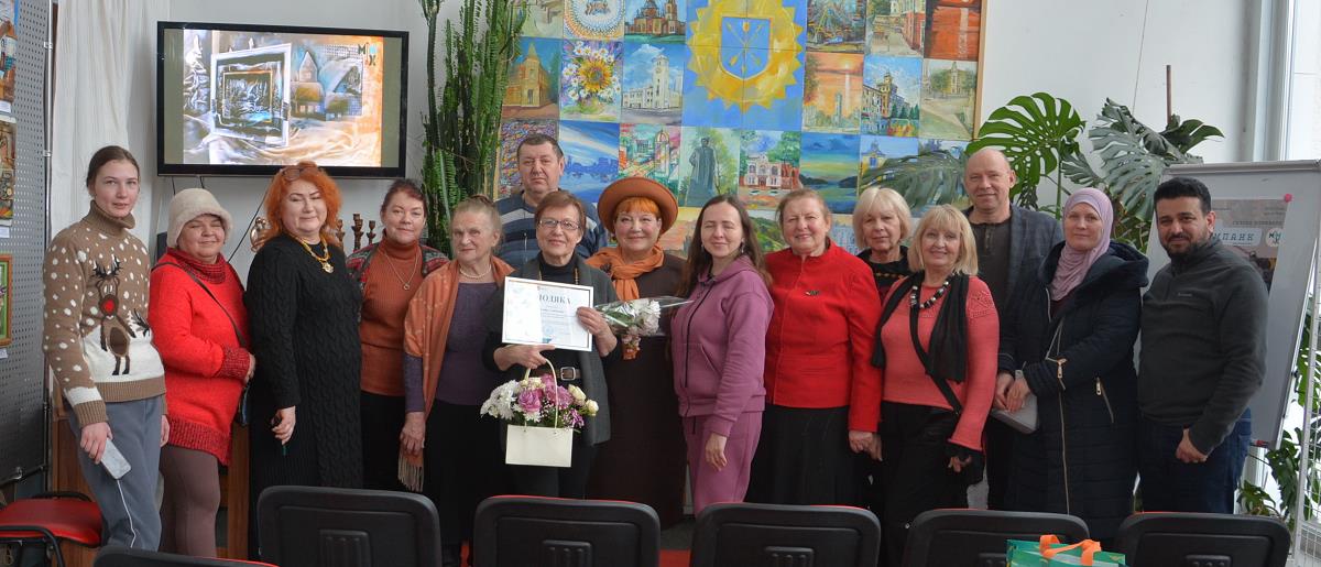 Пані Галина Барабаш передала авторці виставки подяку управління культури і туризму Хмельницької міської ради за організацію й проведення виставки, багатолітню творчу діяльність.
