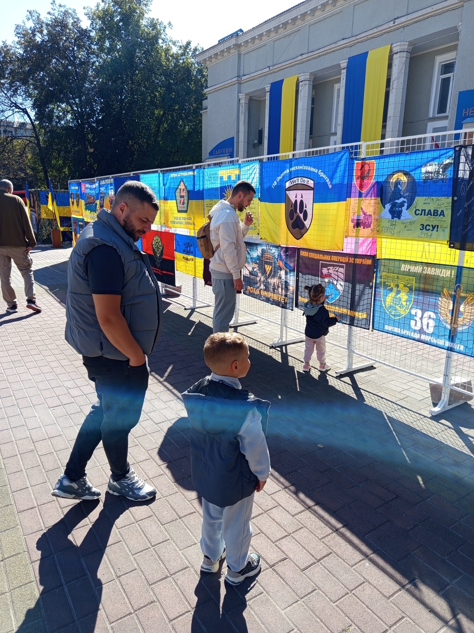 виставки роздивляються на знаменах підписи наших воїнів, їхні позивні, слова