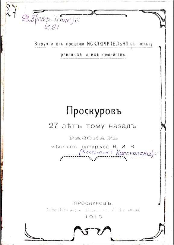 Чесно сказати, на ті часи Проскурів лише на папері був містом, а в реальності скидався на провінційне село з багнюкою по коліно на дорогах. Вам знадобились би черпати (галоші), аби перейти Олександрівську в роздоріжжя, як стверджує нотаріус Костянтин Колоколов, який залишив по собі друковані спогади про власне перебування у Проскурові. Костянтин Іванович Колоколов був провідним проскурівським нотаріусом, який прибув до міста на службу в 1887 році та очолював міську нотаріальну контору понад 20 років. Він став автором першого окремого видання, присвяченого історії Хмельницького, — брошури «Проскуров 27 лет тому назад» (1915). Саме у цих спогадах Колоколов детально описав трансформацію міста з «брудного повітового містечка» на сучасний центр, згадуючи перетворення Проскурова на зламі століть. Він яскраво описував нічний Проскурів тих часів як суцільну темряву з густим туманом, де зрідка миготіли лише тьмяні вогники ручних ліхтарів.
