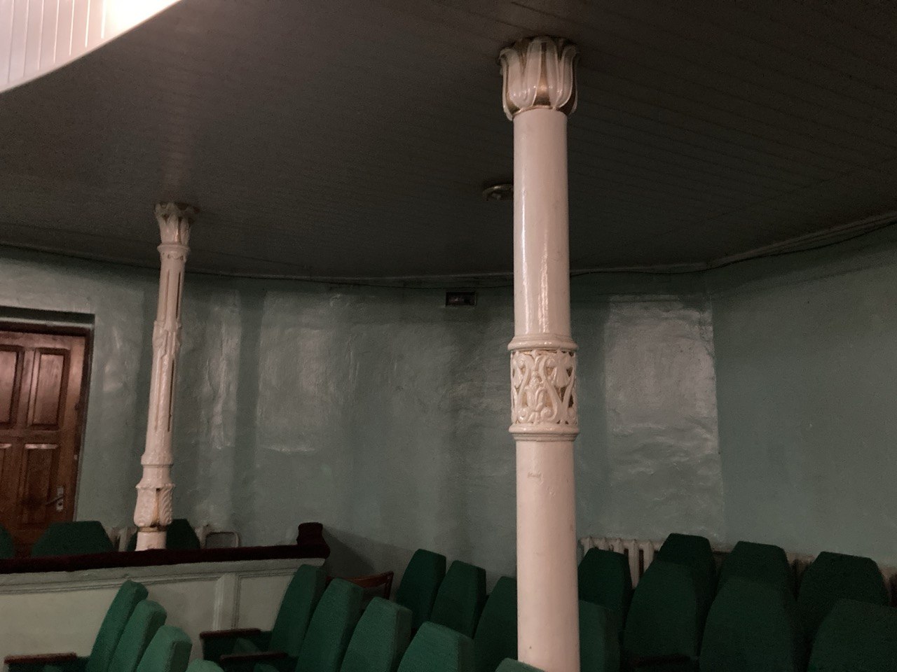 В інтер’єрі театру збереглися вісім колон, які є зразками художнього литва Проскурівського чавуноливарного та механічного заводу Бейріша Ашкіназі.